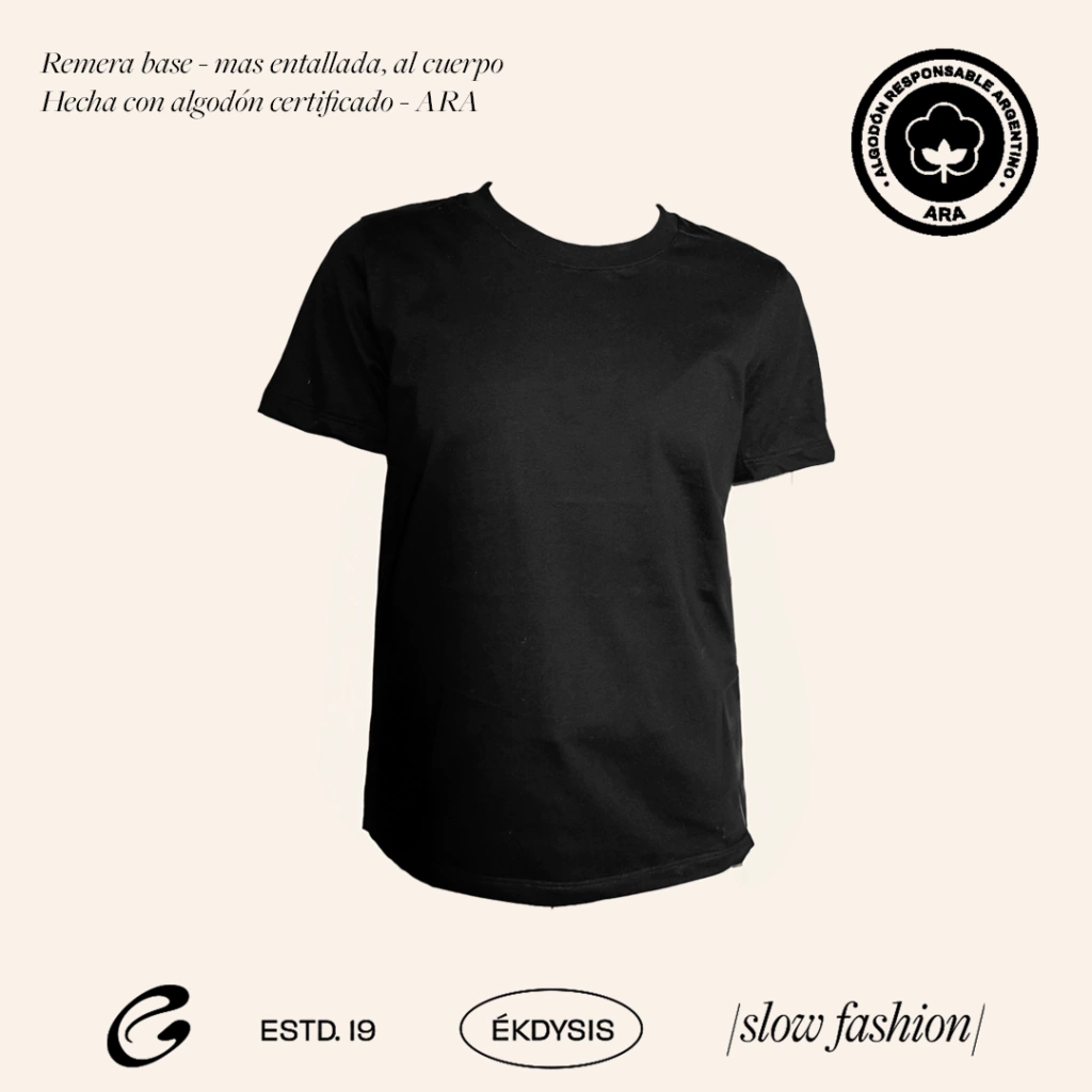 Remera manga corta con cuello redondo, fit slim: más al cuerpo, pero cómoda y versátil. Confeccionada en algodón peinado certificado ARA, garantizando prácticas sustentables y responsables. Complemento en ribb y limpieza de escote en tela base, para un acabado limpio y prolijo.