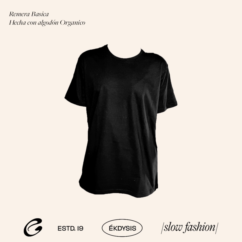 Remera negra unisex, hecha de forma artesanal junto a Stay True. Confeccionada en algodón orgánico proveniente de cultivo biodinámico que utiliza solo agua de lluvia, sin tóxicos, sin transgénicos y bajo comercio justo.